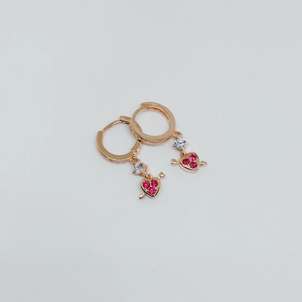 Aros Argolla Rose con Dije Flechazo con Piedras