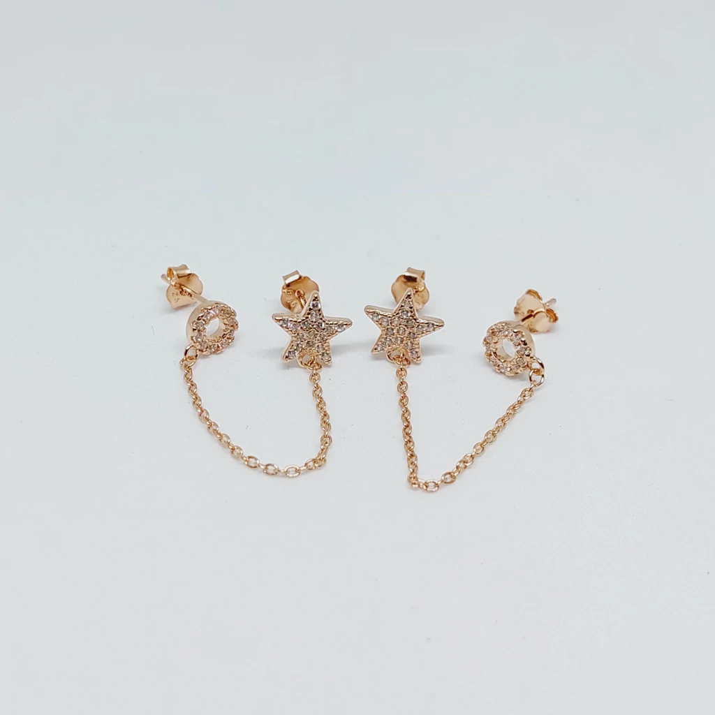 Aros Argolla Gold Dije Rayo con Piedras 13mm