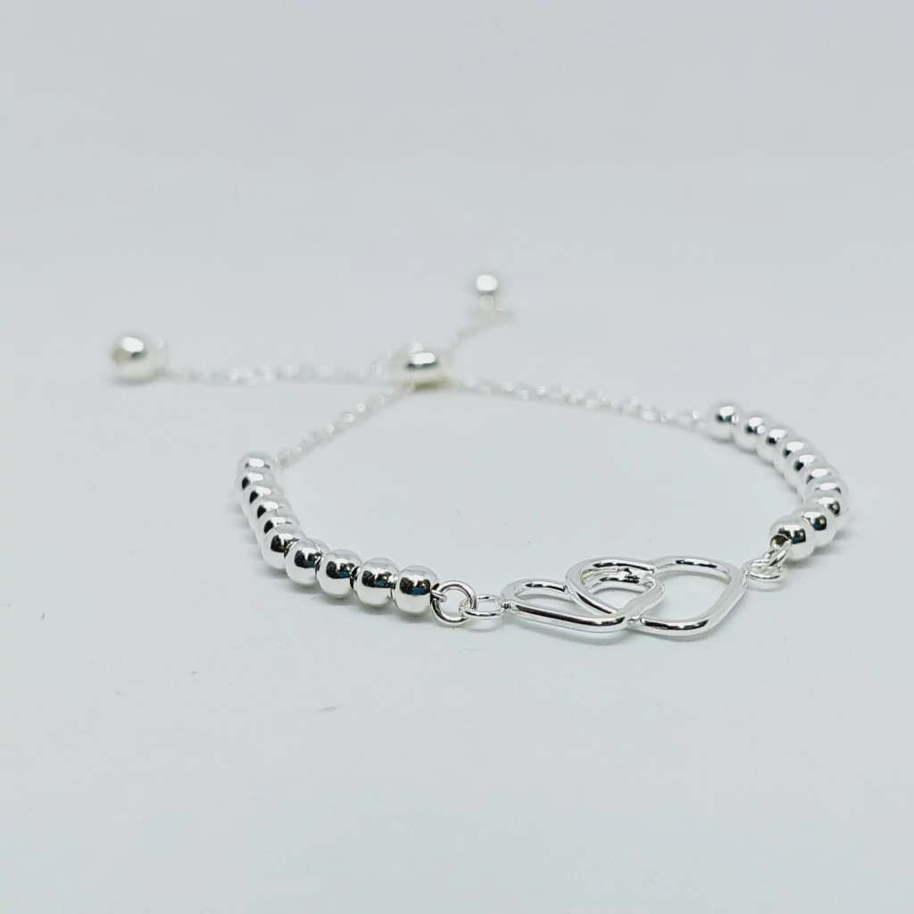 Pulsera Ajustable con Dije Corazones Enlazados