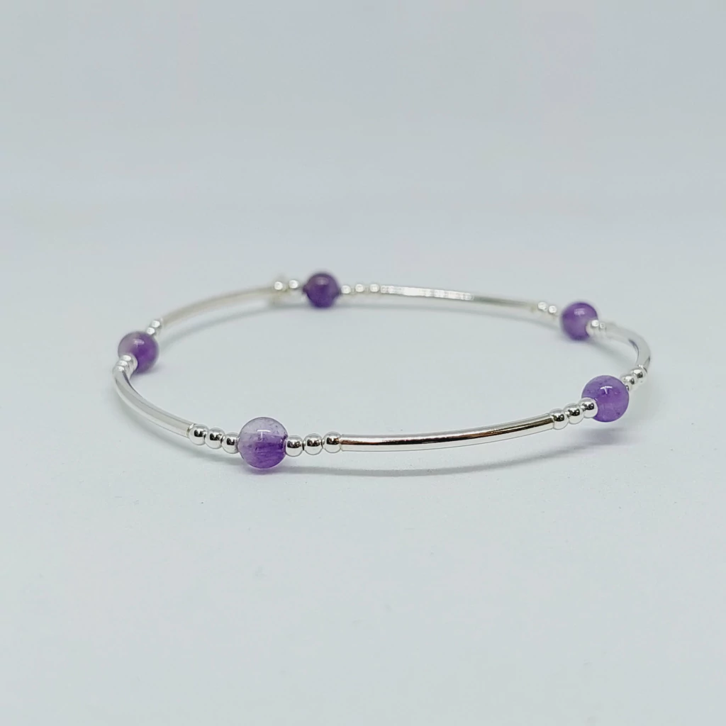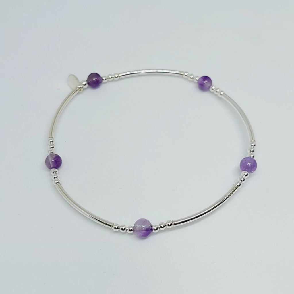 Pulsera Elastizada con Bolitas Lila