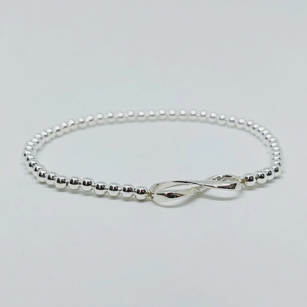 Pulsera elastizada de plata 925 con mini cuentas geométricas. Su diseño delicado y cómodo la convierte en un básico que se adapta a cualquier ocasión: para usar sola o combinar con otras pulseras y crear tu propio mix.