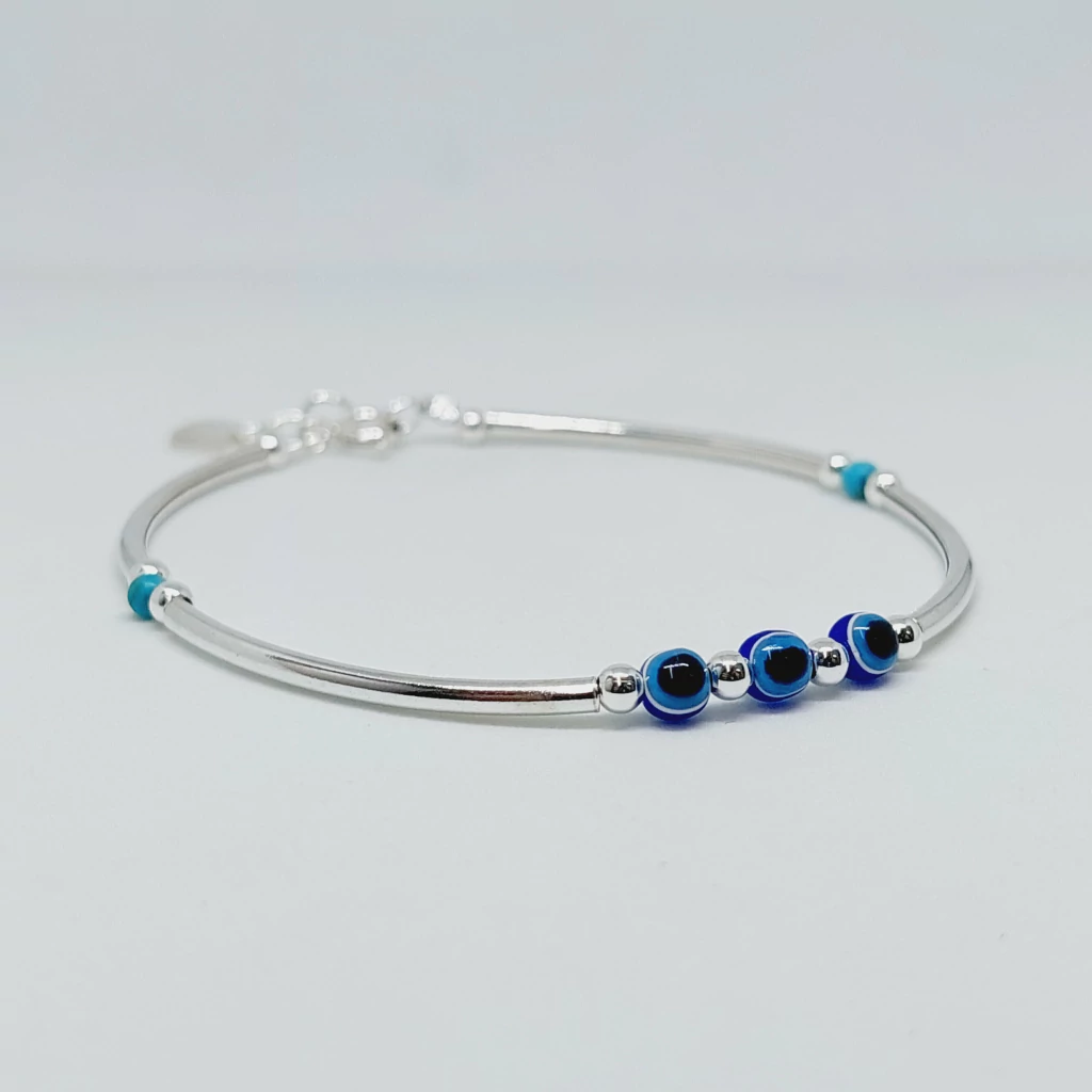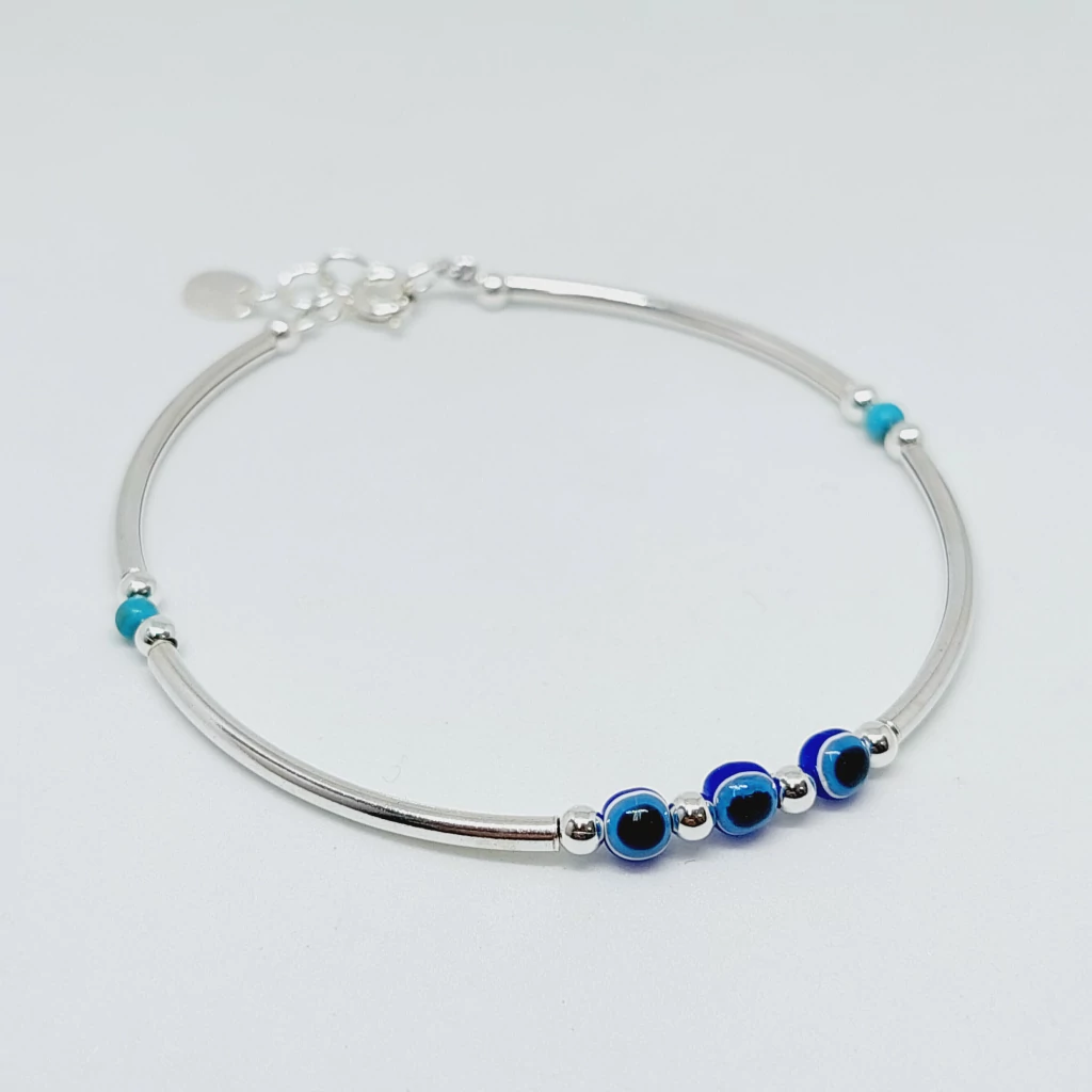 Pulsera Ojitos Griegos y Bolitas Celestes